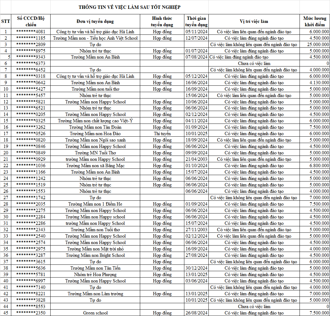 Tin mới Khai giảng Lớp bồi dưỡng kiến thức cơ bản về chính trị, pháp luật cho học viên tại Cơ sở cai nghiện ma túy... Trường Cao đẳng Lạng Sơn tổ chức Hội nghị công tác đào tạo năm học 2025-2026 Giải Bóng đá Cấp trường TH&THCS Lê Quý Đôn Năm học 2025–2026: Thành công từ tinh thần đoàn kết và rèn luyện thể chất Hội thi “HSSV với ý tưởng khởi nghiệp” năm 2025: Trường Cao đẳng Lạng Sơn ghi dấu ấn với nhiều dự án sáng tạo Hội nghị “Tập huấn, bồi dưỡng nâng cao năng lực xây dựng, vận hành, đánh giá và cải tiến hệ thống bảo đảm chất... Trang chủĐảm bảo chất lượng 49-BC: Báo cáo Về tình hình việc làm của sinh viên ngành Giáo dục Mầm non hệ Cao đẳng tốt nghiệp năm 2024 26/05/2025 0 28 Chia sẻ FacebookTwitterInCopy URL Khai giảng Lớp bồi dưỡng kiến thức cơ bản... 05/12/2025 Trường Cao đẳng Lạng Sơn tổ chức Hội nghị... 05/12/2025 Giải Bóng đá Cấp trường TH&THCS Lê Quý Đôn... 03/12/2025 Hội thi “HSSV với ý tưởng khởi nghiệp” năm... 30/11/2025 Hội nghị “Tập huấn, bồi dưỡng nâng cao năng... 29/11/2025