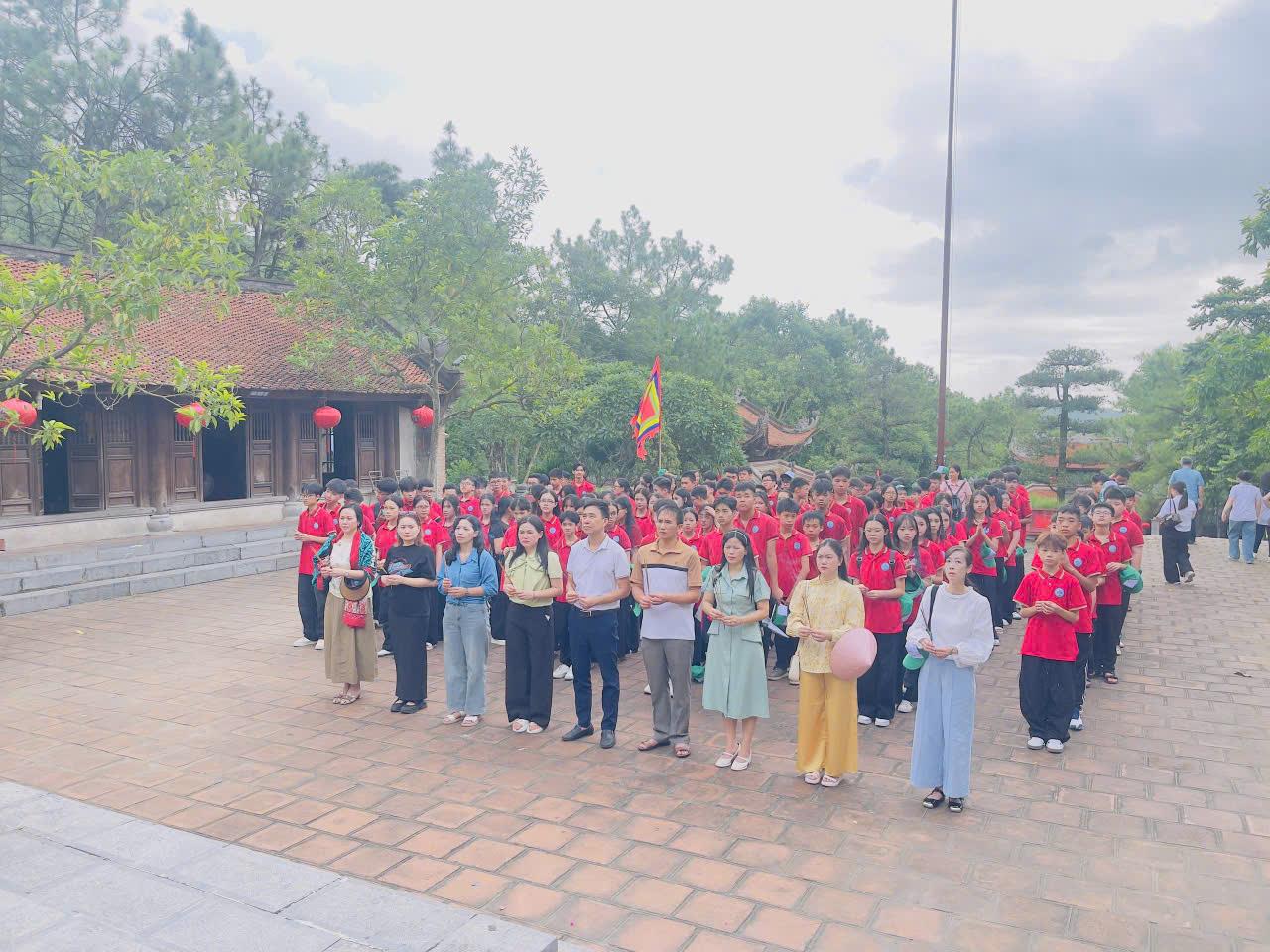 Tại đền thờ thầy giáo Chu Văn An, đoàn tham quan được nghe giới thiệu về thân thế, sự nghiệp của người thầy vĩ đại. Thầy giáo Nông Ngọc Hồi – Phó Hiệu trưởng nhà trường đã cùng giáo viên, phụ huynh và học sinh thành kính dâng hương tưởng nhớ, tri ân công lao của thầy giáo Chu Văn An – “Vạn thế sư biểu” – người thầy mẫu mực của muôn đời, đồng thời gửi gắm tâm nguyện học hành thi cử đăng khoa cho bản thân, mang lại niềm vui, niềm tự hào cho gia đình, nhà trường, đặc biệt là học sinh khối 9 sẽ đỗ trường THPT theo nguyện vọng. Chắp tay cúi mình trước nhân cách cao cả của người thầy vĩ đại, mỗi học sinh đều tự hứa sẽ cố gắng, nỗ lực hơn nữa để xứng đáng với các thế hệ cha ông. Mỗi cán bộ, giáo viên nhà trường cảm thấy xúc động, tự hào về sứ mệnh của mình, từ đó tiếp tục tận tâm, tận lòng cống hiến cho sự nghiệp trông người cao quý. Các thầy cô, phụ huynh, học sinh thành tâm xin chữ như có thêm sức mạnh, niềm tin vững bước hơn trên những chặng đường sắp tới và gặp nhiều may mắn trong cuộc sống.