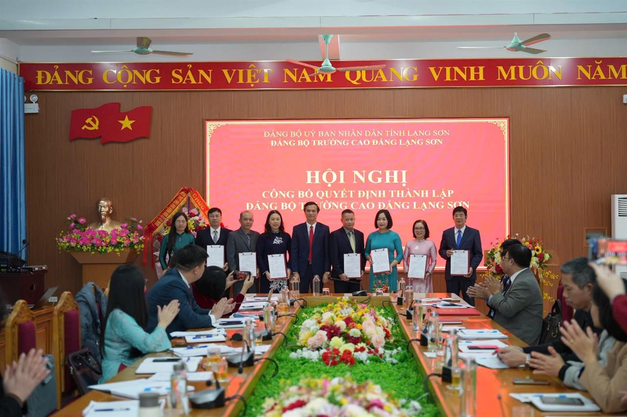 Thực hiện Quyết định số 63-QĐ/ĐU, ngày 02/12/2025 của Đảng ủy UBND tỉnh Lạng Sơn về việc thành lập Đảng bộ Trường Cao đẳng Lạng Sơn trực thuộc Đảng bộ UBND tỉnh, chiều ngày 12/12/2025, Đảng ủy Trường Cao đẳng Lạng Sơn long trọng tổ chức Hội nghị công bố Quyết định thành lập Đảng bộ Trường Cao đẳng Lạng Sơn; công bố các quyết định về công tác tổ chức và thành lập các chi bộ trực thuộc.
