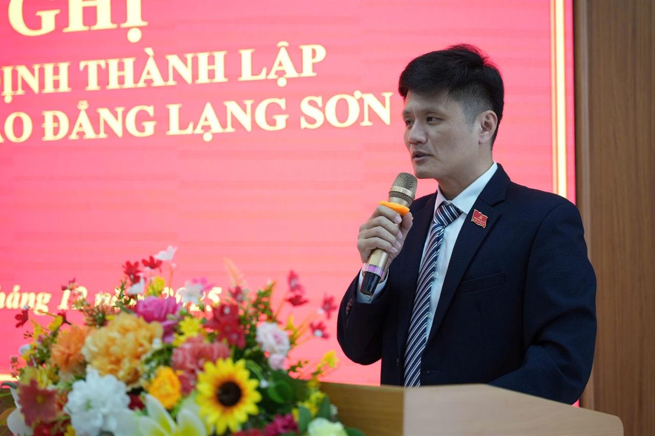 Thay mặt Ban Chấp hành Đảng bộ Trường Cao đẳng Lạng Sơn, đồng chí Phùng Quý Sơn-Bí thư Đảng ủy phát biểu nhận nhiệm vụ, khẳng định quyết tâm của Đảng bộ Nhà trường trong việc nâng cao năng lực lãnh đạo và sức chiến đấu của tổ chức Đảng; xây dựng Đảng bộ trong sạch, vững mạnh; lãnh đạo Nhà trường hoàn thành tốt nhiệm vụ đào tạo nguồn nhân lực, đáp ứng yêu cầu phát triển của tỉnh Lạng Sơn và khu vực trong giai đoạn mới.