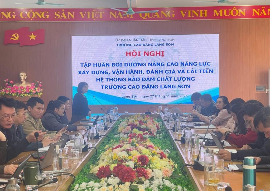 Thực hiện Kế hoạch số 86/KH-CĐLS ngày 28/10/2025 về xây dựng và vận hành hệ thống bảo đảm chất lượng năm học 2025–2026 và Kế hoạch số 128/KH-CĐLS ngày 05/11/2025 về tổ chức Hội nghị tập huấn, bồi dưỡng nâng cao năng lực xây dựng, vận hành, đánh giá và cải tiến hệ thống bảo đảm chất lượng, sáng ngày 27/11/2025, Trường Cao đẳng Lạng Sơn đã tổ chức Hội nghị tập huấn cho 60 cán bộ quản lý, nhà giáo và viên chức thuộc các đơn vị trong toàn trường.