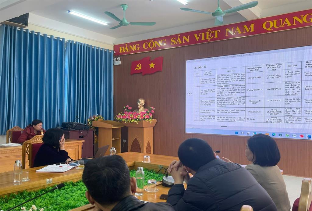 Tại Hội nghị, đại biểu còn được nghe: TS. Đặng Thị Thủy, giảng viên Phòng Quản lý Đào tạo và Hợp tác quốc tế trình bày Quy trình xét công nhận tốt nghiệp; ThS. Nguyễn Văn Trung, Phó Trưởng phòng Công tác HSSV trình bày Quy trình đánh giá kết quả rèn luyện học sinh, sinh viên.