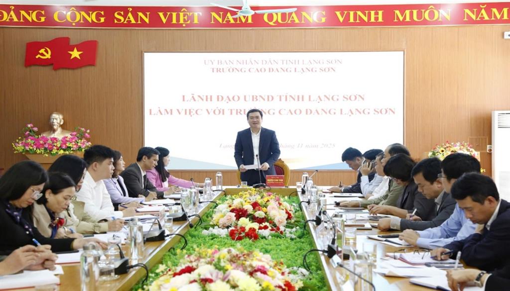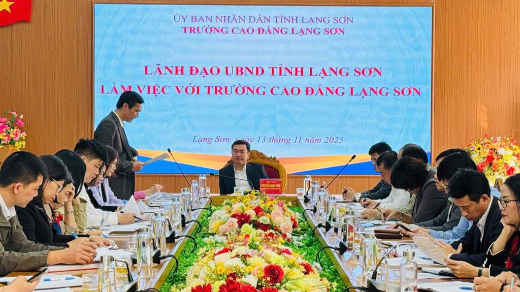 Sáng 13/11/2025, đoàn công tác của Ủy ban nhân dân tỉnh Lạng Sơn do đồng chí Nguyễn Cảnh Toàn, Phó Bí thư Tỉnh ủy, Chủ tịch UBND tỉnh làm Trưởng đoàn đã đến làm việc với Trường Cao đẳng Lạng Sơn, nắm bắt tình hình triển khai nhiệm vụ năm học 2025-2026 và định hướng phát triển của Nhà trường trong thời gian tới.
