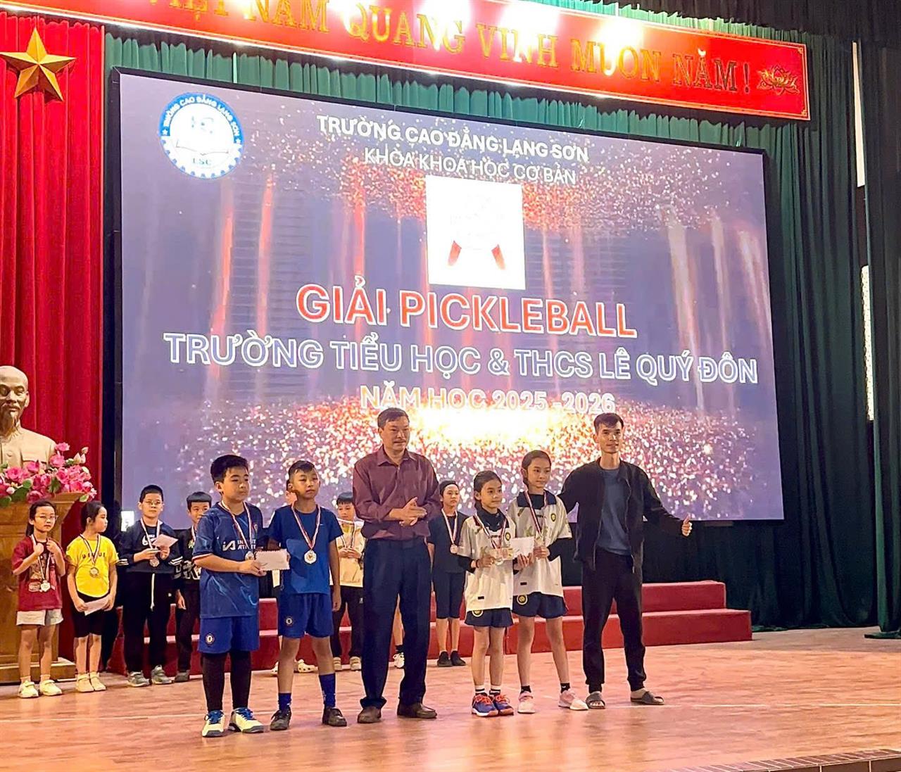Căn cứ kế hoạch năm học 2025–2026 của Khoa Khoa học cơ bản; kế hoạch số 107/KH-LQĐ ngày 10/9/2025 về tổ chức giải thể thao cấp Tiểu học của Trường TH&THCS Lê Quý Đôn; kế hoạch ngoại khóa do Bộ môn Giáo dục Thể chất – Quốc phòng An ninh xây dựng, ngày 18/12/2025, Khoa Khoa học cơ bản đã phối hợp với Trường TH&THCS Lê Quý Đôn tổ chức Giải Pickleball dành cho học sinh khối 4 và khối 5. Giải đấu diễn ra thành công, góp phần thúc đẩy phong trào rèn luyện thể thao trong nhà trường, tạo sân chơi lành mạnh, bổ ích, hỗ trợ học sinh phát triển toàn diện.