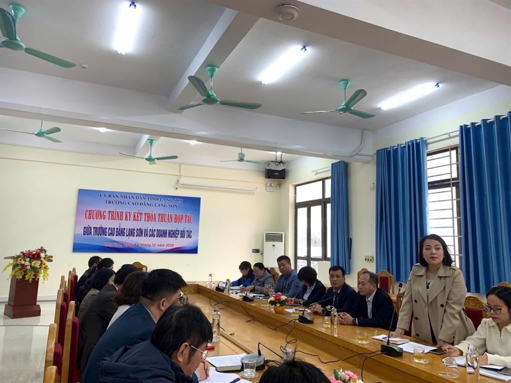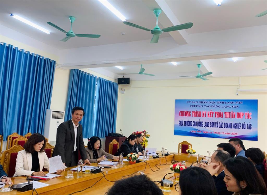 Trước sự chứng kiến của lãnh đạo các bên, ba biên bản thỏa thuận hợp tác đã được ký kết giữa Trường Cao đẳng Lạng Sơn và Viễn thông Lạng Sơn, Công ty cổ phần Công nghệ Giáo dục Tương lai Trí Phổ Việt Nam; Công ty cổ phần phát triển Giáo dục Quốc tế Việt Phát Lạng Sơn. Các thỏa thuận này đánh dấu bước khởi đầu quan trọng trong việc mở rộng quan hệ hợp tác giữa Nhà trường với doanh nghiệp, góp phần thúc đẩy mô hình đào tạo gắn với nhu cầu thực tế, tăng cơ hội việc làm cho học sinh sinh viên và phát triển nguồn nhân lực địa phương.