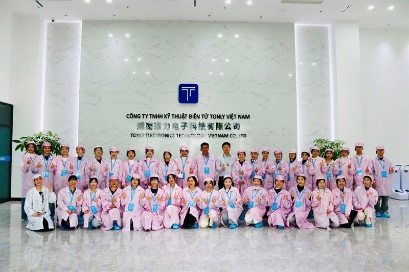 Đoàn giảng viên, sinh viên Nhà trường chụp ảnh lưu niệm cùng đại diện Lãnh đạo, nhân viên Công ty TNHH Kỹ thuật điện tử Tonly Việt Nam