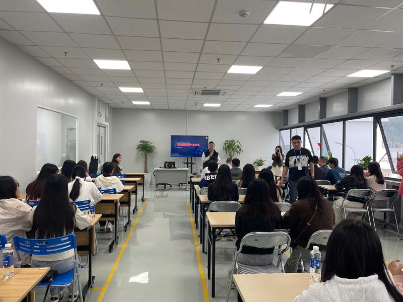 Sinh viên chuyên ngành Tiếng Trung Quốc nghe lãnh đạo Công ty TNHH BOI Việt Nam giới thiệu về các vị trí việc làm công ty đang cần tuyển dụng