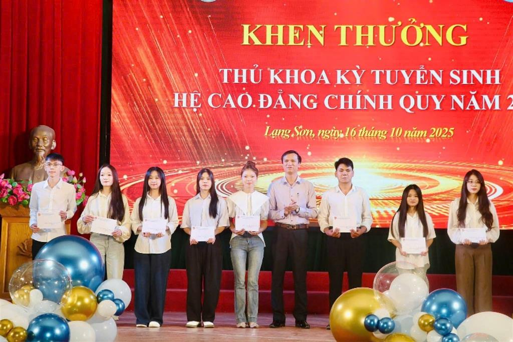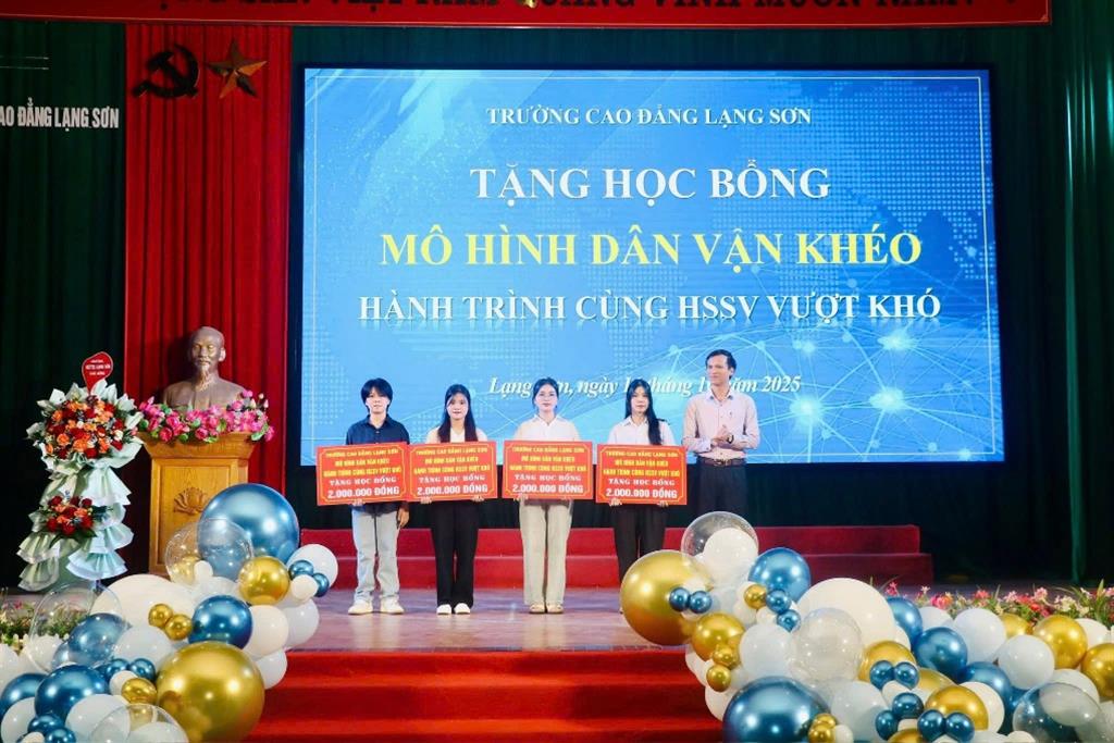 Bên cạnh đó, Đảng ủy Trường Cao đẳng Lạng Sơn đã trao 05 suất học bổng “Hành trình cùng học sinh, sinh viên vượt khó” – hoạt động thuộc mô hình “Dân vận khéo – Làm theo lời Bác”, nhằm động viên, khích lệ tinh thần vượt khó vươn lên trong học tập và rèn luyện của sinh viên có hoàn cảnh khó khăn. Dịp này, Nhà trường cũng vinh danh 09 sinh viên thủ khoa các ngành học năm 2025, ghi nhận và tôn vinh những nỗ lực, thành tích tiêu biểu của các em.