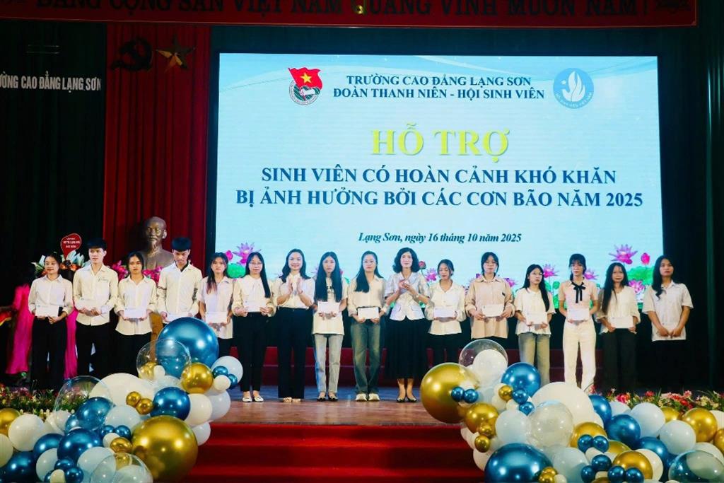 Cũng trong khuôn khổ chương trình, Ban Chấp hành Đoàn Thanh niên – Hội Sinh viên Nhà trường đã trao kinh phí hỗ trợ cho 48 sinh viên có hoàn cảnh khó khăn, bị ảnh hưởng bởi thiên tai, từ phong trào quyên góp “Chung tay sẻ chia – Vững vàng sau bão”. Tổng số tiền quyên góp được là 10.560.000 đồng, thể hiện tinh thần đoàn kết, nhân ái, “lá lành đùm lá rách” của tuổi trẻ Trường Cao đẳng Lạng Sơn.