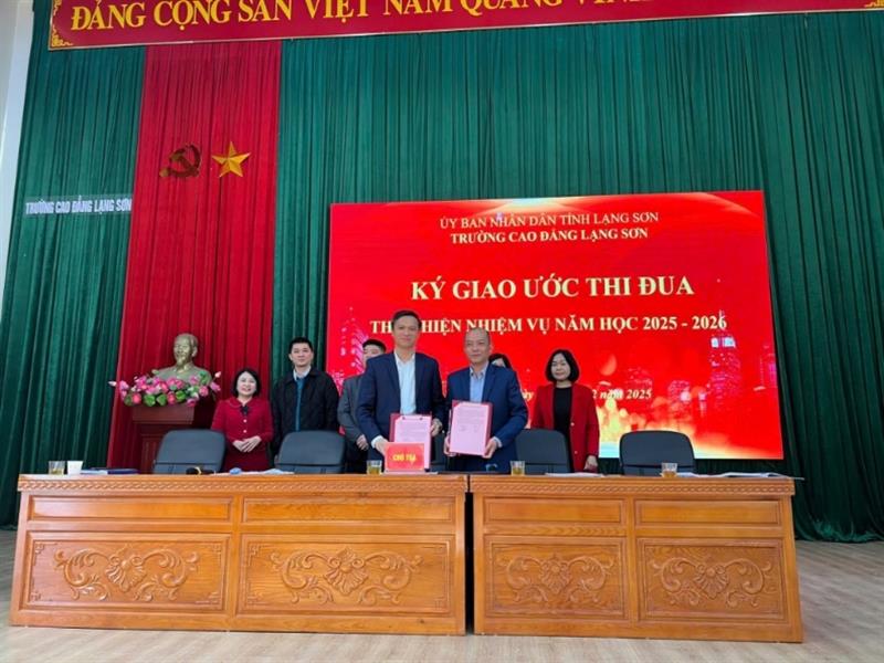 Để thể hiện quyết tâm thực hiện kế hoạch năm học, đồng chí Phùng Quý Sơn-Phó Hiệu trưởng phụ trách Nhà trường và đồng chí Vi Văn Hưng-Chủ tịch Công đoàn Trường đã ký giao ước thi đua thực hiện nhiệm vụ năm học 2025-2026 trước sự chứng kiến của tập thể Lãnh đạo Nhà trường, Ban Thường vụ Công đoàn Trường và toàn thể viên chức, người lao động.
