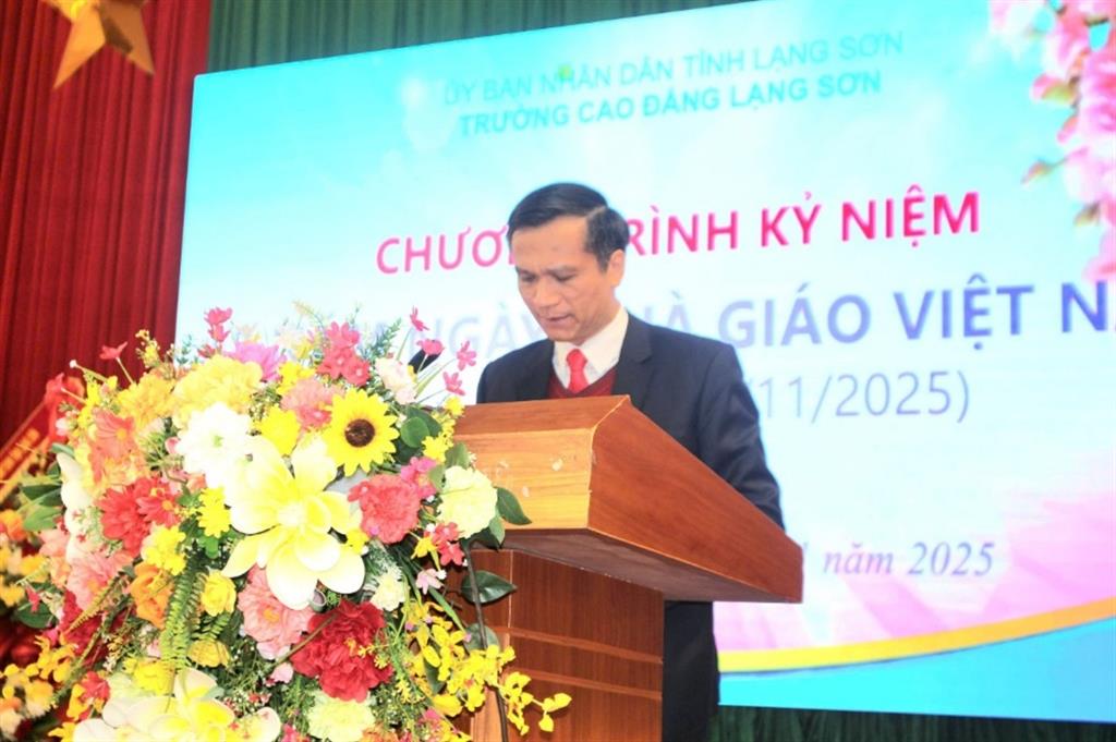 Tại Chương trình, đồng chí Phùng Quý Sơn- Phó Hiệu trưởng phụ trách Nhà trường đã trình bày diễn văn chào mừng, ôn lại lịch sử Ngày Nhà giáo Việt Nam và điểm lại những nỗ lực, kết quả nổi bật của Nhà trường trong thời gian qua. Đồng chí nhấn mạnh tinh thần đoàn kết, đổi mới và khát vọng vươn lên của tập thể Trường Cao đẳng Lạng Sơn trong giai đoạn chuyển mình mạnh mẽ, đặc biệt là sau quá trình sáp nhập ba trường. Đồng thời, đồng chí cũng xác định 08 nhiệm vụ mà trong thời gian tới Nhà trường cần tập trung tổ chức, triển khai thực hiện, đó là: “Đổi mới công tác quản trị và hoàn thiện tổ chức bộ máy theo mô hình mới; Chuẩn hóa và phát triển đội ngũ giảng viên; Nâng cao chất lượng tuyển sinh và đào tạo; Đẩy mạnh nghiên cứu khoa học, công nghệ và chuyển đổi số trong quản lý và giảng dạy; Tăng cường liên kết với doanh nghiệp, các đơn vị sử dụng lao động, các cơ sở giáo dục đào tạo và hợp tác quốc tế; Đầu tư cơ sở vật chất và trang thiết bị đào tạo; Xây dựng phẩm chất và phát triển toàn diện học sinh, sinh viên; Phát triển văn hóa và giá trị cốt lõi của Nhà trường”.