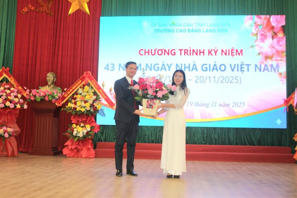 Ban Giám hiệu Trường Cao đẳng Lạng Sơn tặng hoa tri ân các Nhà giáo