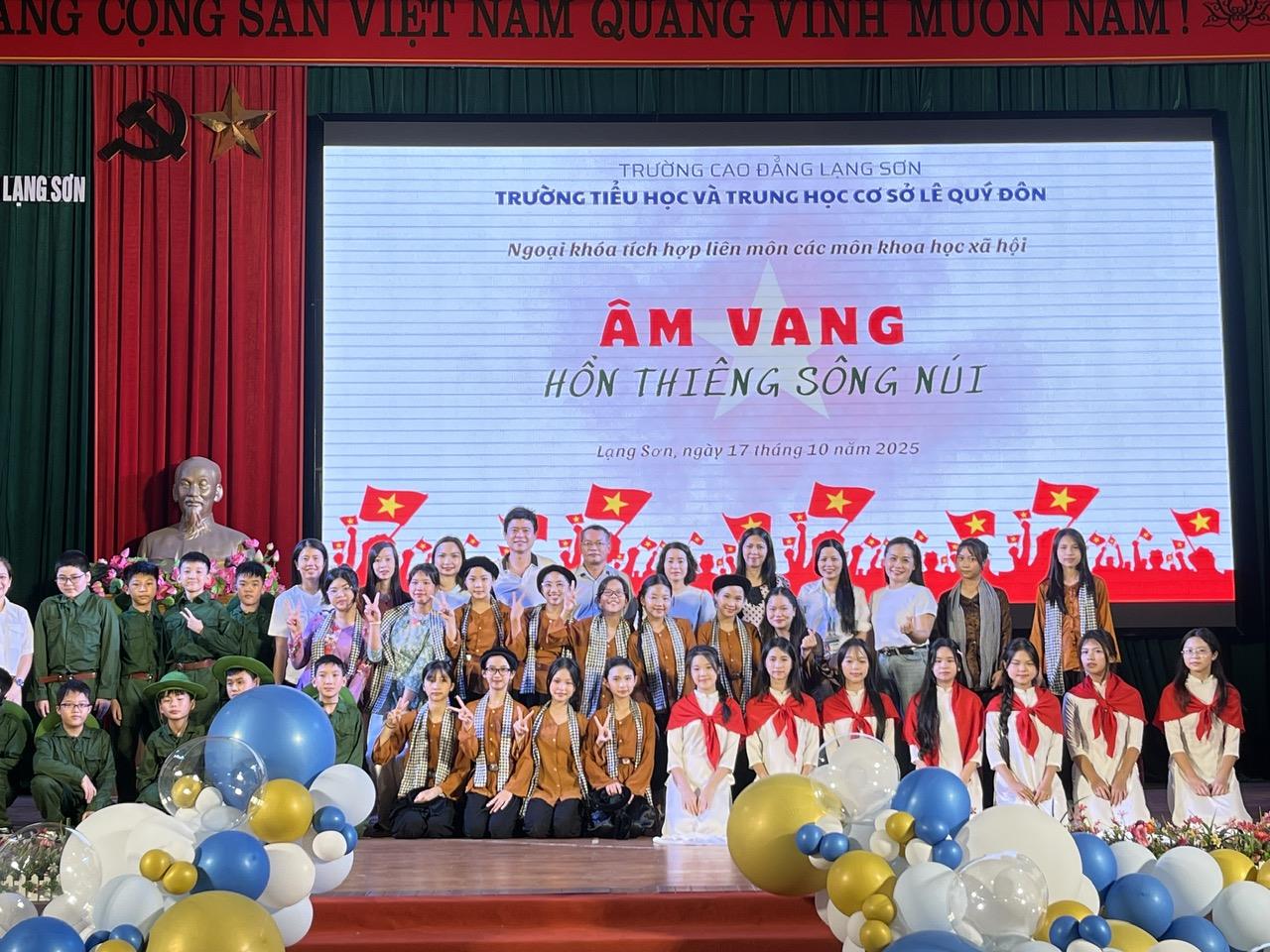 Diễn ra đúng vào dịp kỷ niệm 75 năm Ngày giải phóng Lạng Sơn (17/10/1950-17/10/2025), chương trình là lời tri ân sâu sắc và khẳng định tinh thần yêu nước, niềm tự hào về 4.000 năm lịch sử của dân tộc, được thầy và trò Trường TH&THCS Lê Quý Đôn thể hiện bằng tất cả tình yêu và trách nhiệm.