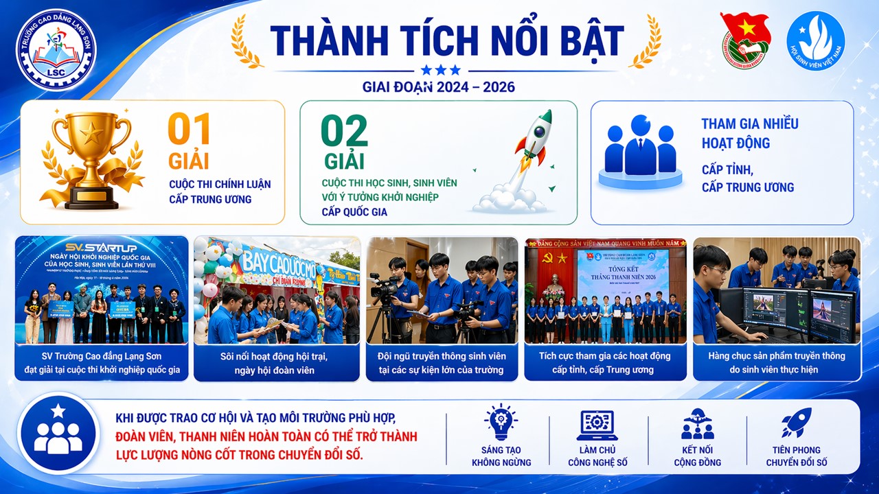 Tin mới Trường Cao đẳng Lạng Sơn tổ chức Hội nghị triển khai Khung năng lực số cho người học Tổ chức ngoại khóa chủ đề “Nâng cao năng lực số cho giáo viên, học sinh khối giáo dục thường xuyên” Chủ động xây dựng kế hoạch ôn luyện, Trường Cao đẳng Lạng Sơn đạt 09 giải tại Kỳ thi học sinh giỏi khối Giáo... Cuộc thi Sáng tạo dành cho thanh thiếu niên, nhi đồng tỉnh Lạng Sơn lần thứ 18 (năm 2026) Trường Cao đẳng Lạng Sơn tổ chức chương trình tham quan, trải nghiệm và hướng nghiệp cho học sinh Trường TH&THCS Tú Đoạn Trang chủKhoa học công nghệ VAI TRÒ CỦA HOẠT ĐỘNG ĐOÀN ĐỘI TRONG THÚC ĐẨY SÁNG TẠO SỐ VÀ NĂNG LỰC SỐ CHO HỌC SINH SINH VIÊN 22/04/2026 0 5 Chia sẻ FacebookXInCopy URL BÌNH LUẬN Hủy trả lời Bình luận: Vui lòng nhập bình luận của bạn Tên:* Vui lòng nhập tên của bạn ở đây Email:* Bạn đã nhập một địa chỉ email không chính xác! Vui lòng nhập địa chỉ email của bạn ở đây Website: Lưu tên, email và trang web của tôi trong trình duyệt này cho lần tiếp theo tôi nhận xét. Δ Trường Cao đẳng Lạng Sơn tổ chức Hội nghị... 22/04/2026 Tổ chức ngoại khóa chủ đề “Nâng cao năng... 21/04/2026 Chủ động xây dựng kế hoạch ôn luyện, Trường... 21/04/2026 Cuộc thi Sáng tạo dành cho thanh thiếu niên,... 16/04/2026 Trường Cao đẳng Lạng Sơn tổ chức chương trình... 15/04/2026